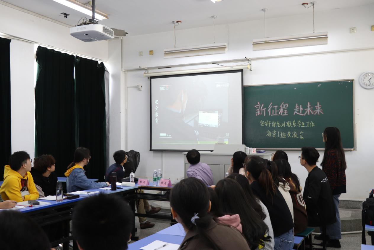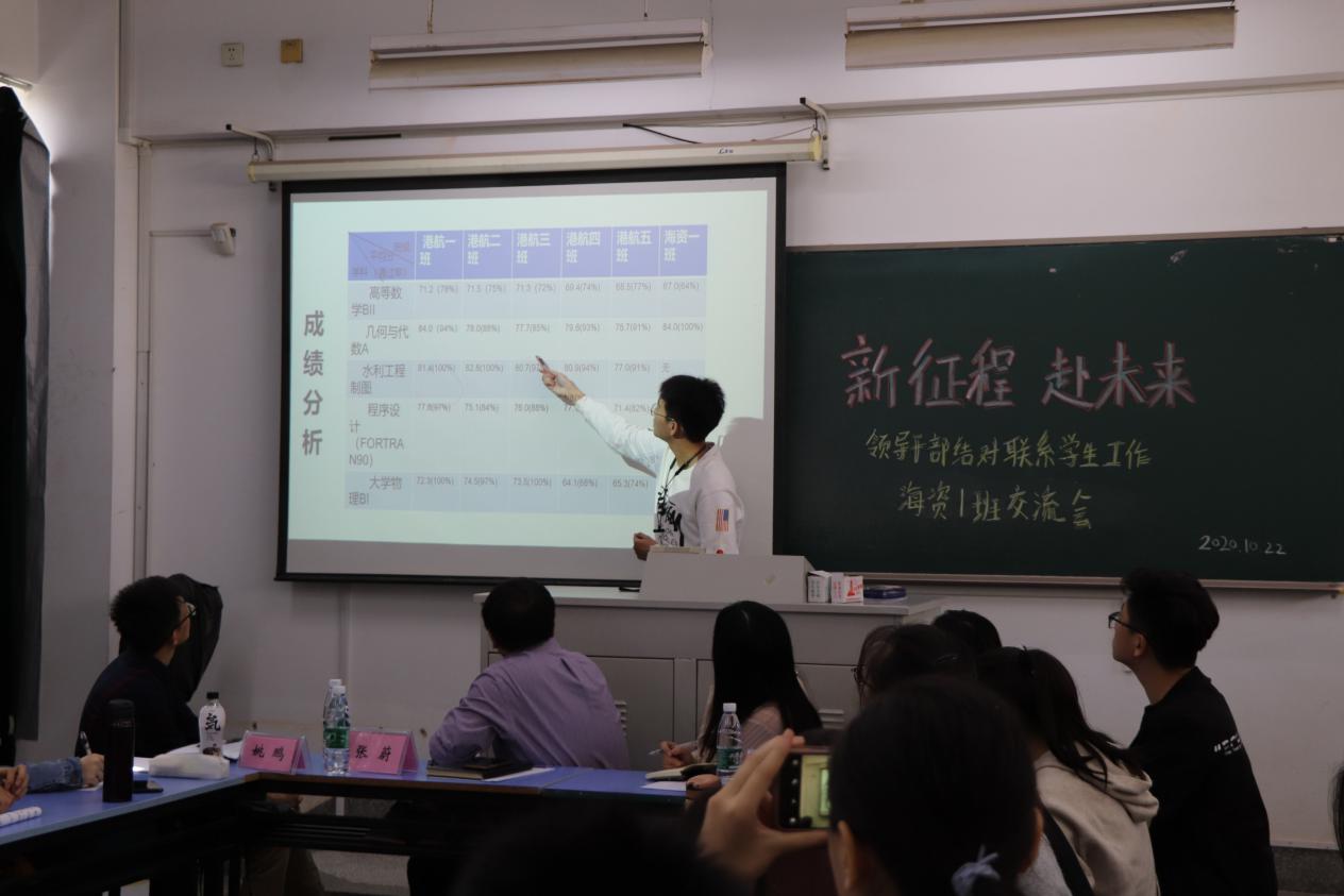 在班委汇报结束后,张院长就海资的第一学年情况与班级同学展开交流,提出大学生应在保证学业成绩的前提下培养自身的综合能力。陈所长就专业特色与专业发展方向两方面详细介绍了“认识实习”课程的具体安排,同时还为班级同学指明了海资专业的就业方向。