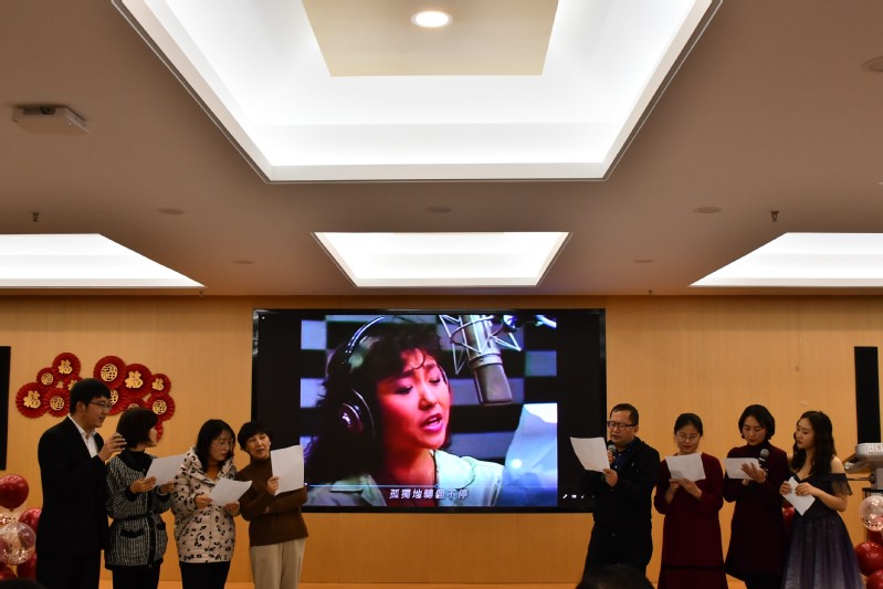 会上各个系所的老师们欢聚一堂,尽情酣唱——声情并茂的朗诵,精彩纷呈的歌舞,妙语连珠的相声,形式多样的节目让人目不暇接,拍手叫绝。