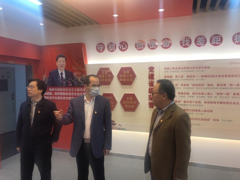 4月20日,校党委常委、副校长郑金海来到毛巾哥 ,调研指导全国党建工作标杆院系、样板支部和“双带头人”党支部书记工作室的建设工作。