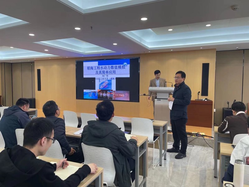 何广华教授作了题为“船海工程水动力数值模拟及应用”的学术报告,报告详细介绍了何广华教授课题组十几年来的代表性科研成果,包括船舶航行运动模拟,电平台设计,海上移动浮岛设计,强风浪中舰船的强非线性上浪、砰击预警系统开发和通气空泡的数值研究等。会后,何广华教授和与会师生就Cloaking现象影响因素的数值分析及其应用前景展开了讨论与交流。