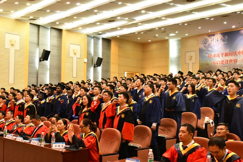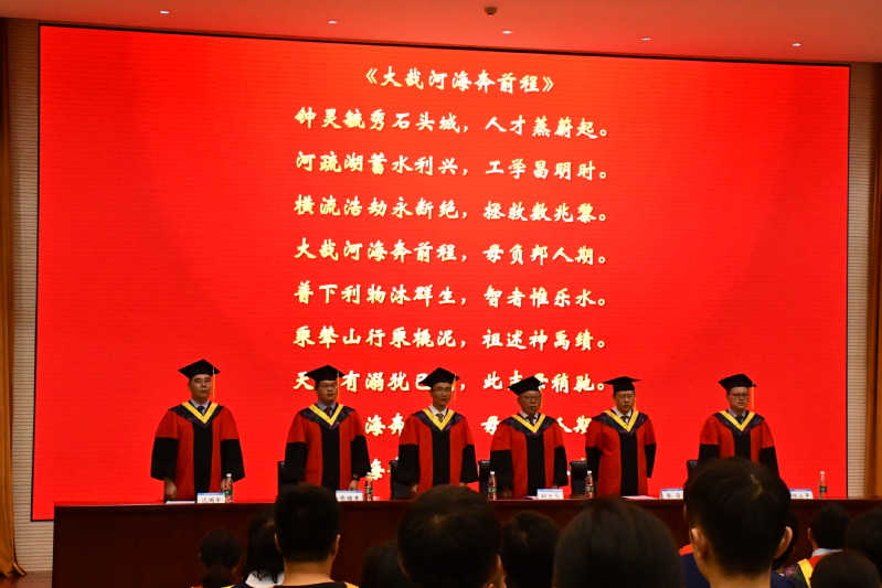 领誓代表2017级本科毕业生郭恩斗同学带领全体毕业生进行宣誓,“情系河海,心系港航;勇立潮头,敢为人先;为我国水利事业建设奋斗终身”。最后,典礼在庄严雄伟的校歌中圆满结束。在即将告别之际,衷心祝愿全体毕业生一帆风顺,前程似锦,用青春的激情、执着的信念、过硬的本领,开创更加绚丽的人生!