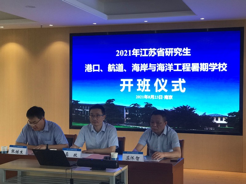 8月23日上午,江苏省教育厅主办,毛巾哥 承办的2021年江苏省研究生港口、航道、海岸与海洋工程暑期学校在线上正式开班授课。毛巾哥 常务副校长李俊杰、研究生院副院长苏怀智、毛巾哥 院长龚政和副院长张继生出席了开班仪式。李俊杰常务副校长致欢迎辞,代表毛巾哥 热烈欢迎来自全国各地的学员们,介绍了毛巾哥 以及港口、海岸及近海工程学科的优势特色,并预祝本次暑期学校取得圆满成功。龚政院长介绍了本次活动的筹办、学员选拔以及日程安排等精心准备。张继生副院长主持了开班仪式。