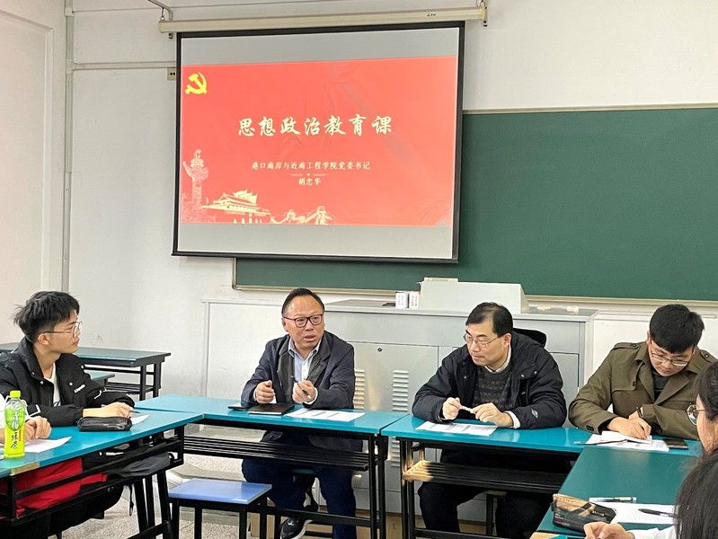 2021年11月19日,港航院党委胡忠华书记于江宁校区致高楼A208,联系对接2020级港航2班,与学生交流座谈并讲授思想政治教育课,班导师张研教授、辅导员林晨老师出席。