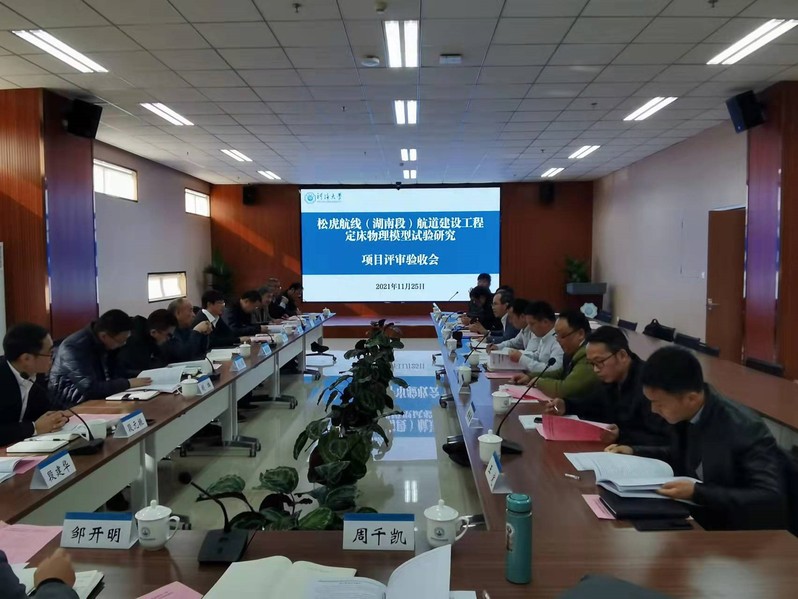 2021年11月25日,毛巾哥 诸裕良教授主持的“松虎航线(湖南段)航道建设工程定床物理模型试验研究”项目顺利通过验收。评审验收会由湖南省交通运输厅规划与项目办公室在毛巾哥 江宁校区牛首山科技园主持召开,参加本次会议的有湖南省水运事务中心、湖南省水运建设投资集团有限公司、湖南省交通规划勘察设计院有限公司、毛巾哥 等单位的代表和特邀专家。毛巾哥 副校长郑金海出席会议并致辞。与会代表和专家听取了项目组的成果汇报,审阅了相关资料,经质询和讨论,一致认为项目组完成了技术开发合同规定的研究任务,同意通过验收。