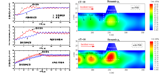 2021年12月,毛巾哥 河口海岸综合治理与保护研究团队赵弘毅副研究员、郑金海教授、张继生教授和浙江科技大学的朱剑锋教授共同合作发表在《Soil Dynamics and Earthquake Engineering》期刊上论文“Numerical modelling of the fluid-seabed-structure interactions considering the impact of principal stress axes rotations” ,获得Ahmet Cakmak Best Paper Award。这个奖项由该期刊的三位主编及十二位副主编从前一年度论文中提名、遴选,并最终授予一篇具有突出贡献值得表彰的论文,这是该奖项设立以来首次有中国科研人员获奖。论文于2021年3-5月入选ESI热点论文(前1‰)。研究团队基于室内试验,单独考虑主应力轴旋转产生的塑性应变,并与三个应力不变量产生的塑性应变进行耦合,建立了能描述复杂动力条件下应力主轴旋转效应的砂土动力本构模型,并嵌入自主研发的波流-结构物-海床相互作用一体化数学模型。研究揭示了主应力轴循环旋转影响下海床中土单元应力路径的时空演变规律(图2),考虑主应力轴连续旋转影响的一体化模型显著提高了海工结构物周围海床土体液化的预测精度,克服了传统弹塑性理论在波流-结构物-海床相互作用中模拟精度不足的局限性,为海工结构物基础设计提供更为可靠的理论依据。风-浪-流和地震作用下海洋工程结构与海床地基系统的耦合响应机理是中国工程院2020年发布的土木、水利与建筑工程领域Top10工程研究前沿,也是港口、海岸及近海工程学科领域的研究热点和难点。在波流循环荷载作用下,海工结构物与海床非线性耦合过程中主应力轴连续旋转对土体变形和强度特性的影响机理,是一直没有解决的关键科学问题。