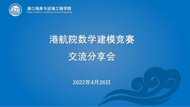 为在学院内营造优良学风,帮助学生了解数学建模竞赛的备赛方法,港航院于4月26日举办数学建模竞赛交流分享会,邀请2018级数学建模竞赛获奖的陈文昊、张楠、杨沐盛,线上为2020级学生分享数学建模竞赛形式、备赛经验、比赛心得等,20级辅导员林晨老师主持。