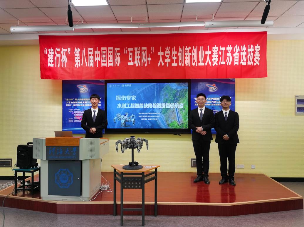 在主赛道本科生初创组,由张蔚、廖芳艺、林晨等老师指导,港航院2018级本科生吕辉、2019级本科生杜雨昂、2019级本科生李昊、2020级本科生陈家骥等同学共同完成的创新创业项目《探伤专家——水利工程智能缺陷检测设备领航者》获得大赛一等奖。