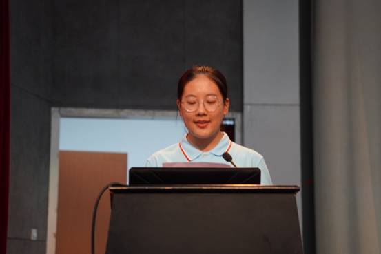 新生代表何雅琪表达了加入河海港航大家庭欣喜和对大学学习生活的憧憬,倡议全体新生共同为港航的明天贡献自己的力量,下定决心成长为具有“中国灵魂、全球视野、河海特质”的水之子。