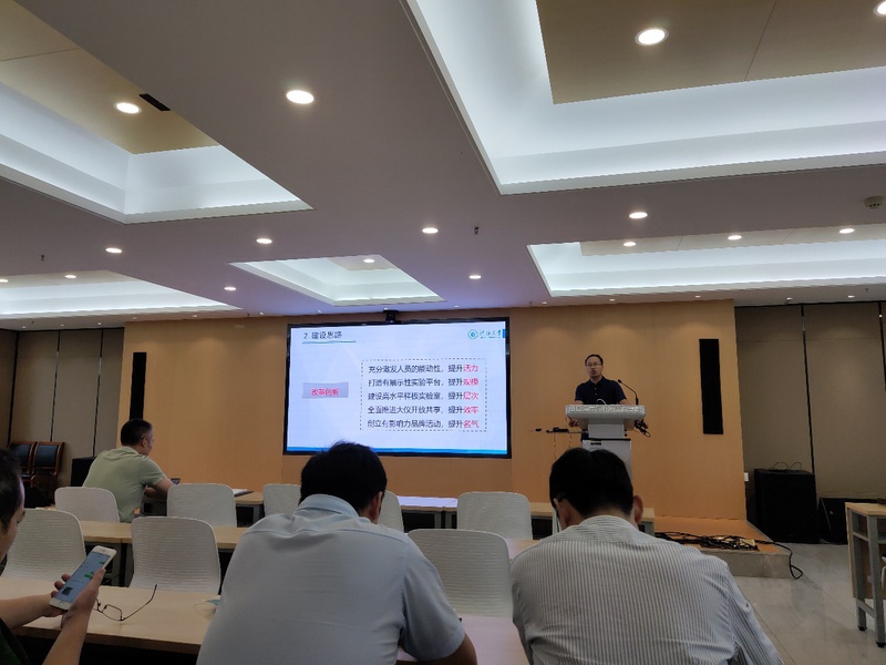 会后,陈红副处长一行、张俊基书记、陈永平副院长与实验中心全体教师进行了座谈,就实验室定编定岗、实验室管理及相关工作进行了深入交流。张书记进行了总结,对学院实验室的建设与管理提出殷切希望并给出了具体建议。