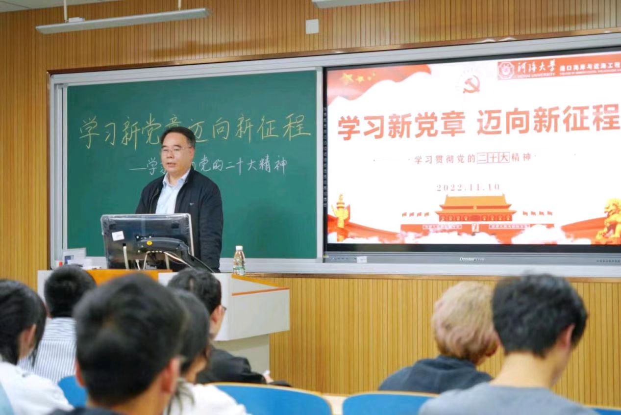 11月10日,港航院党委副书记沈国军在致用楼219为港航院2021级本科生入党积极分子讲授“学习新党章、迈向新征程——学习贯彻党的二十大精神”专题党课。