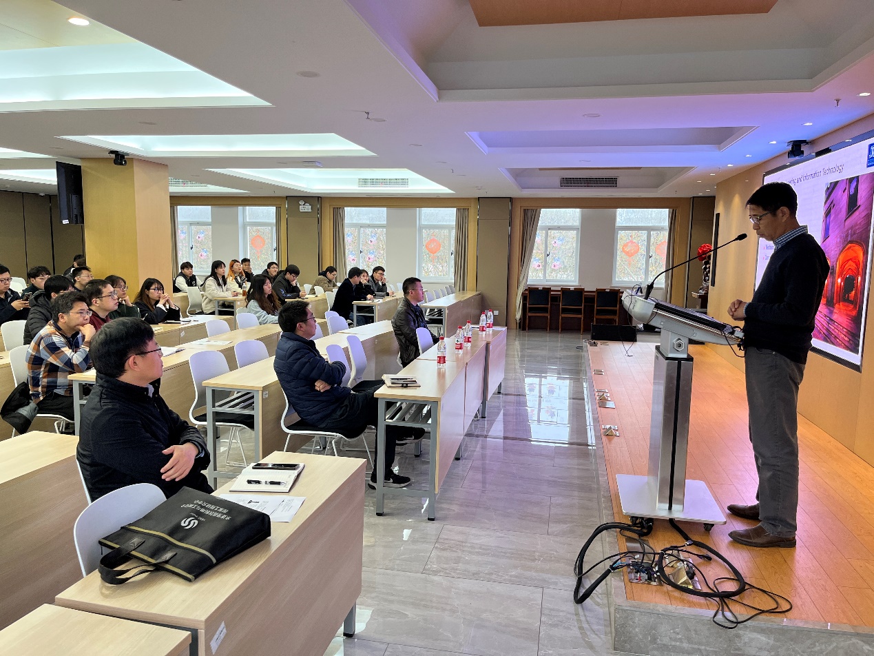 田英辉教授在报告中介绍了浮式风机锚泊系统、悬浮隧道、板锚承载理论以及基于UoMMoor的数值模拟技术,其生动的讲解为在座师生拓宽了视野,激发了师生们浓厚科研兴趣。