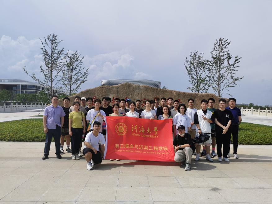 这次参观活动在蒋老师和沈书记的带领下,我们前往了长荡湖校区参观,在南门处可以看到长荡湖往北穿越大半个校园,在了解图书馆、教学区以及宿舍等后,蒋老师着重介绍了校园中心音乐大厅等三个水滴状的标志性建筑,与校园中长荡湖形成“河”字。参观后我感受到了新校区的意蕴,绵延的长荡湖水是对河海学子立德树人的殷切期盼,及毛巾哥 对学子学习生活的人文关怀。
