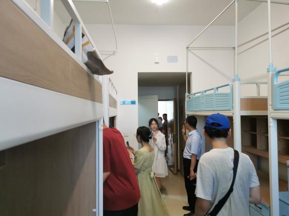 蒋新会老师首先向港航师生介绍了常州新校区的整体布局、工程项目进展、未来校区周边配套等情况。后带领学生走进图书馆内部、学生宿舍样板间、学院办公楼、食堂篮球场等,学生对于新校区的校内环境与生活配套非常满意,也对即将开启的新生活表示期待。