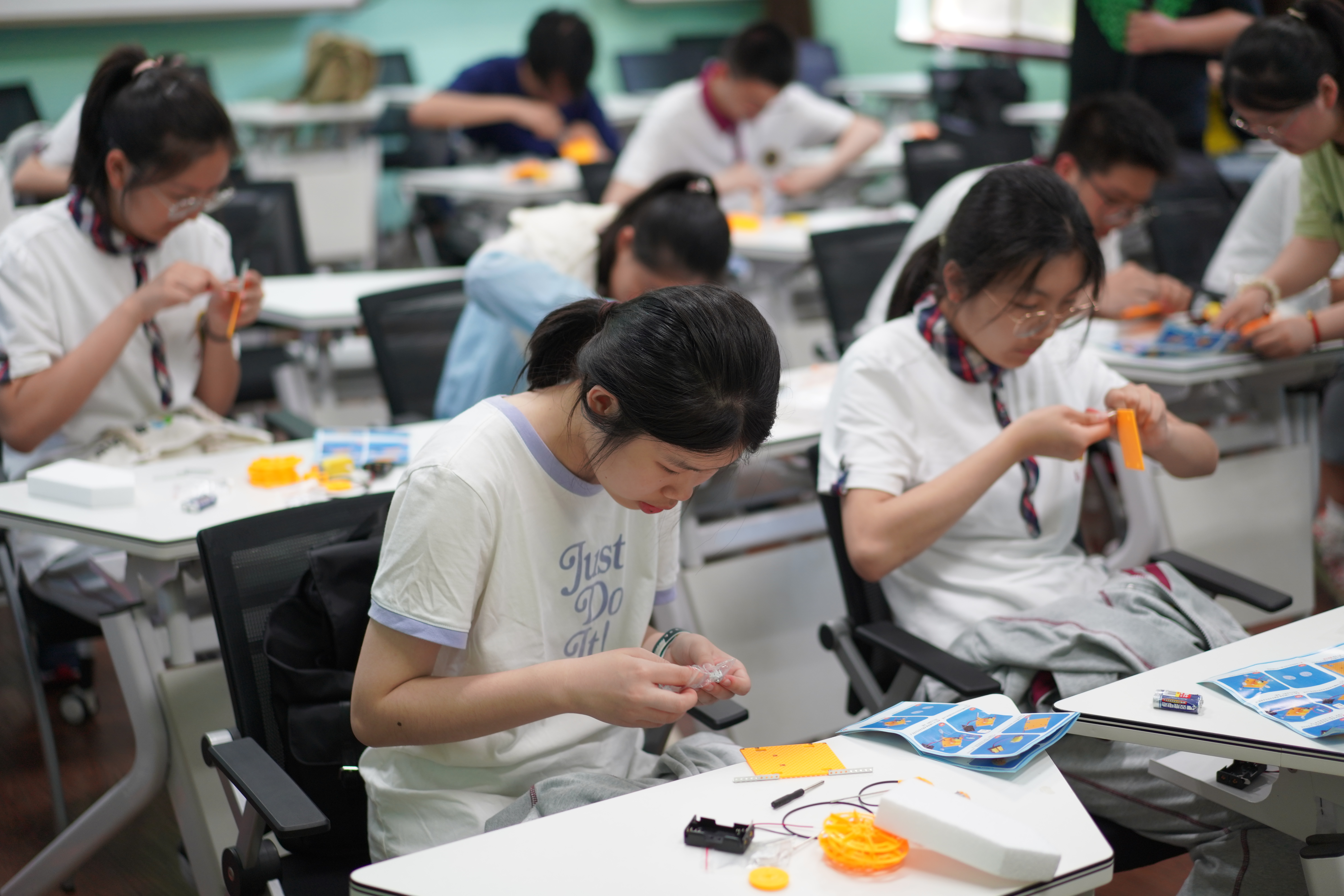 在教室里,南京一中高中生与毛巾哥 学生交流大学生活,一起完成了海上装备模型拼装活动,帮助同学们在活动中感受实践探索的魅力,丰富了学生的水利常识,提升了其实践动手能力。