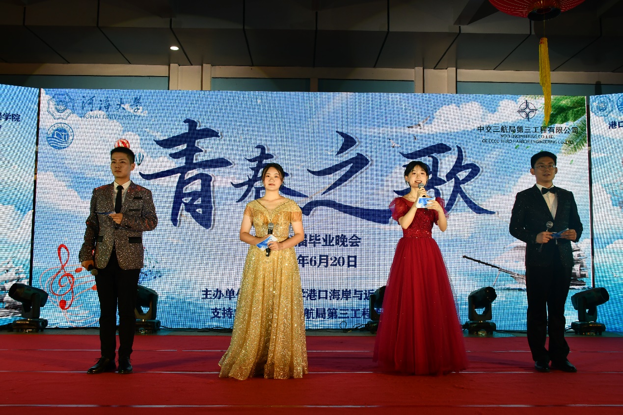 晚会开始由张俊基书记致辞,张书记表达了对全体毕业生顺利完成学业表示祝贺,对三航局对本次活动的支持表示感谢。张书记针对“什么样的青春才是自己想要的?”这一问题,他认为最美的青春,是奋斗正当时;最美的青春,是勇于探索;最美的青春,是全力以赴。最后,张书记祝福毕业生开启人生的崭新旅途,在新的征程中努力探索,预祝晚会演出圆满成功。