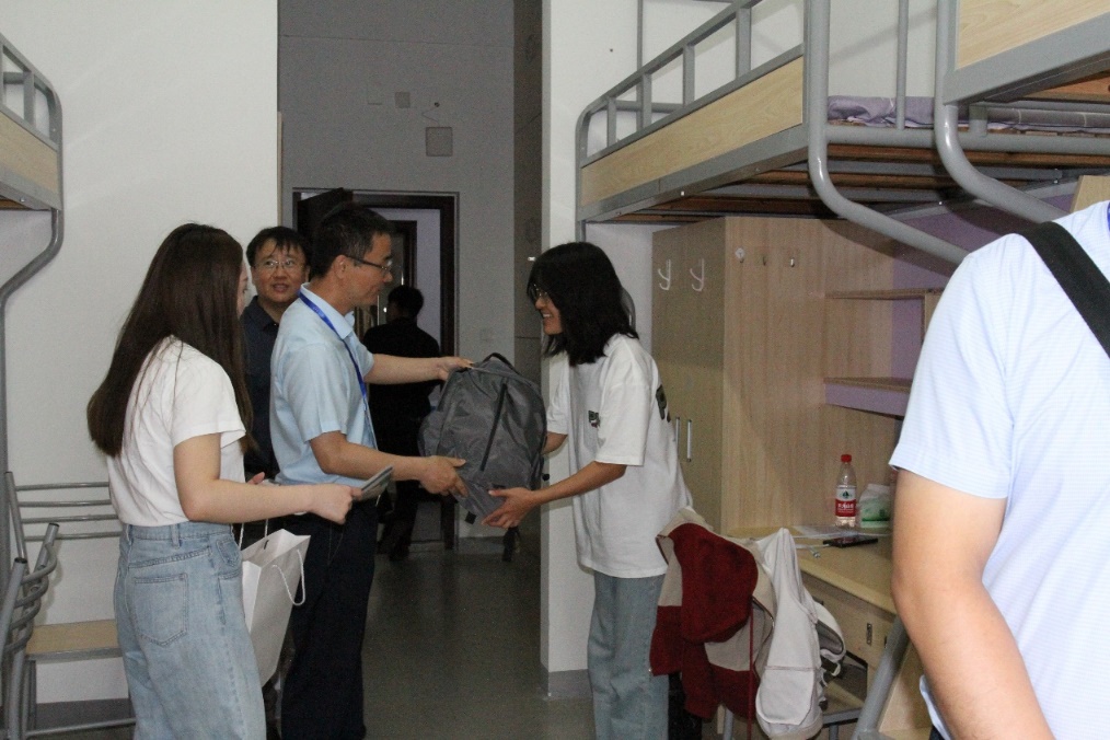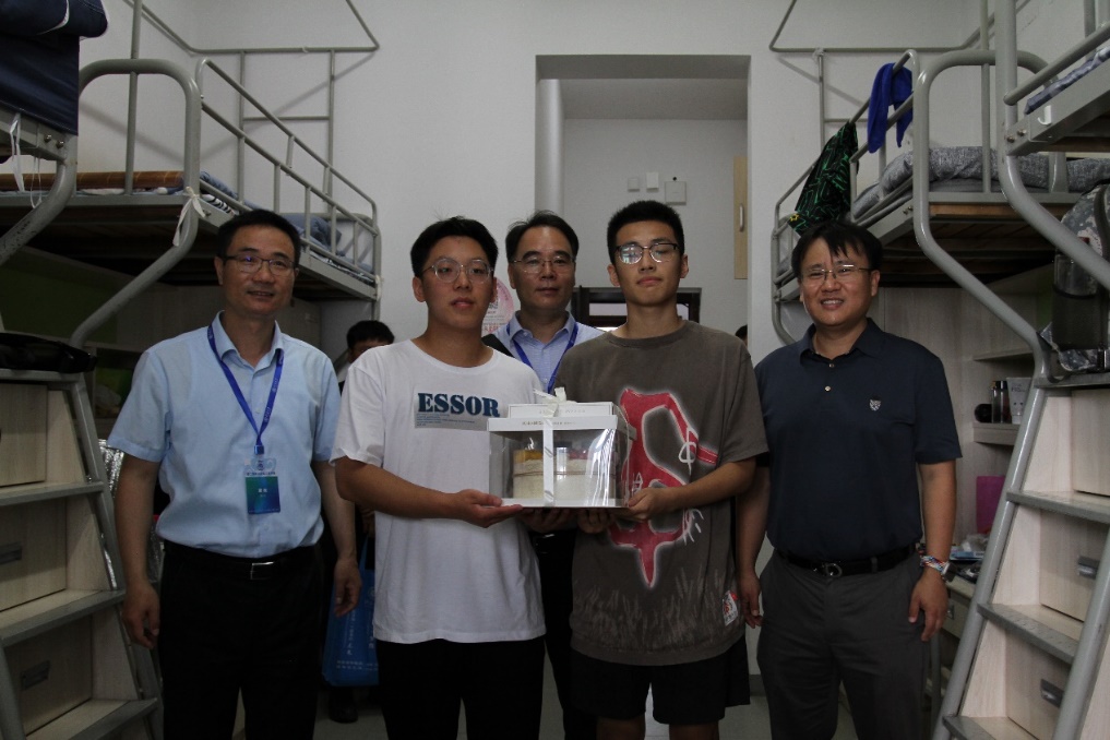 6日上午,学院领导、班导师、辅导员走进学生宿舍,为报到新生过生日,并送上生日蛋糕与祝福。针对家庭经济困难学生,学院也定制了“港航学院爱心大礼包”,其中包含了学习及生活用品,助力新生未来的学习生活。学院领导在宿舍与学生、家长充分交流,仔细地询问了新生入学后从衣食住行的需求。新生们也对学院领导们的关怀表示感谢,表示对即将开始的大学生活充满了信心。