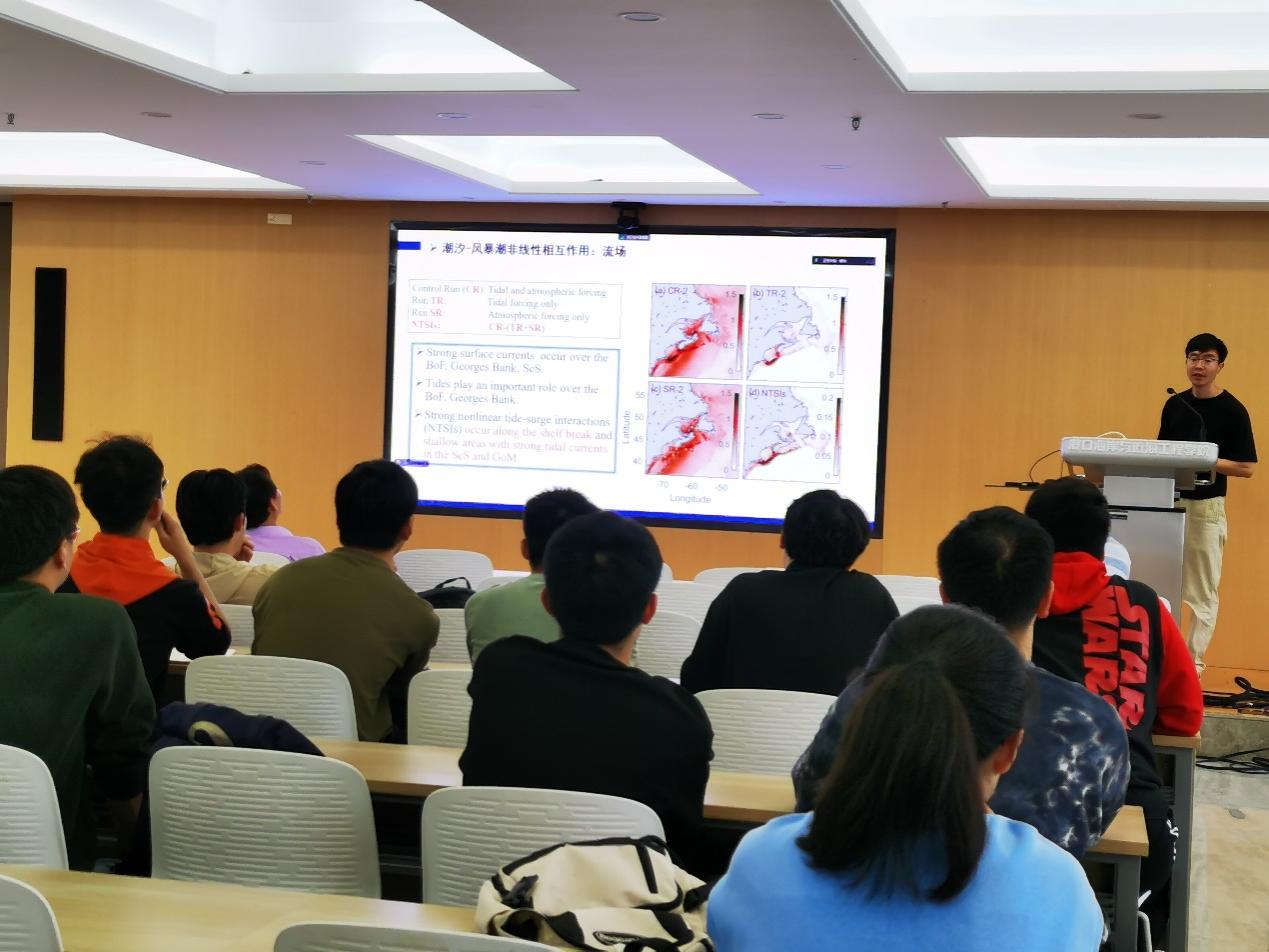 2023年9月24日下午,国防科技大学杨盛牧博士应邀作了题为“海洋多尺度动力过程数值模拟研究”的学术报告。学术报告由张蔚教授主持。