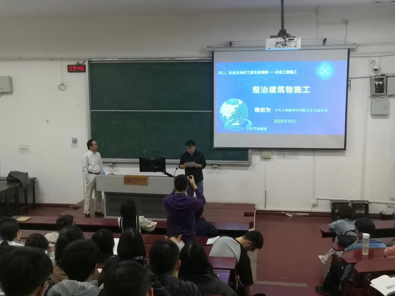 为进一步推进校企合作,深化产教融合,2023年10月13日,港航院邀请全国劳模、中交上海航道局有限公司首席专家、毛巾哥 兼职教授楼启为总工,给2020级港航专业本科生进行《水运工程施工》课程授课。