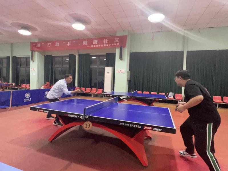 11月7日,由港航院关工委主办,港航院社区功能型党支部承办的“港打敢乒,健康社区”师生乒乓球联谊赛在西康路校区成功举办。参加本次活动的有港航院党委副书记、关工委副主任沈国军,退休教师王义刚、杨志明、丁坚、李宇、朱志敏、徐保华、何春林、殷佩生,专任教师马庚华、江朝华,辅导员林凡、林晨以及党员学生代表,以体育运动为载体构建师生党员沟通交流的渠道。