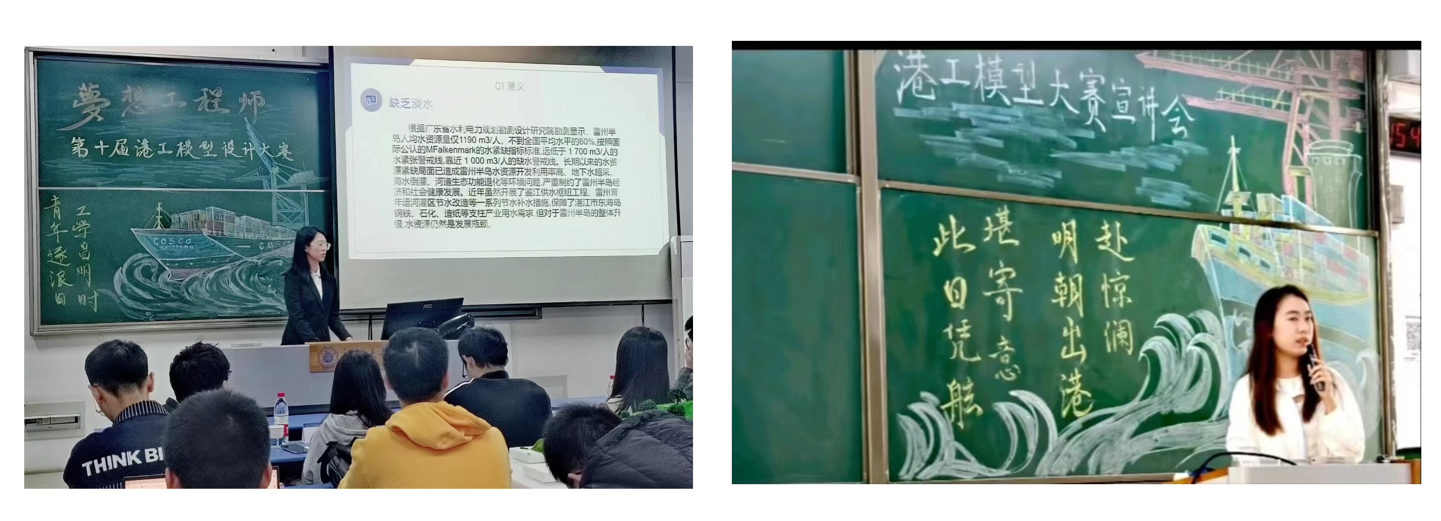 10月28日至11月18日,港航院第十届“梦想工程师”港工模型设计大赛取得圆满成功。本届港工模型大赛由两次宣讲会、初赛和决赛组成。往届获奖选手在第一次宣讲会上分享模型制作的经验,第二次宣讲会由港航院专业教师讲解专业知识并做现场指导,两次宣讲会拓宽了参赛选手的思路,更提高了比赛的专业水平。在初赛和决赛过程中,参赛选手通过挑选材料、打磨答辩稿、模型制作等环节加深了对港工建筑物的认识和理解,将书本中的专业知识转化为实体模型,提升了创新能力和动手技能。港工模型设计大赛从创新维度服务大赛导向,从融合深度彰显港航特色,从专业实践拓展科研思维,引导水之子投身专业学习,营造了良好的创新氛围。