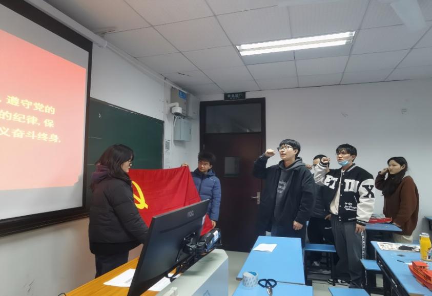 在党支部书记刘治宇同志的带领下,支部成员面向鲜红的党旗,紧握右拳,重温曾经许下的庄重誓言,一字一句,声音洪亮,八十字的誓言,是那样历久弥坚。重温入党誓词,正是为了擦亮初心,使我们进一步强化党的观念,增强党员意识,自觉遵守党的纪律,牢记作为一名共产党员的使命担当。