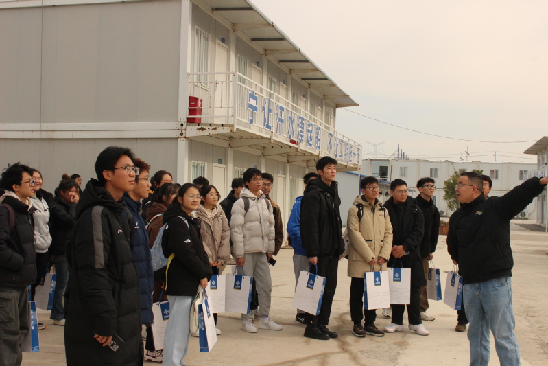 2023年12月26日,港航院组织开展“走访名企 接轨职场”就业实践专项活动第5期,30余名23级本科生前往中交广州航道局盐城港射阳港区航道项目部和项目现场参观调研,通过观看宣传视频、探访工地现场、座谈互动交流等形式了解企业基本情况与工程建设情况。项目部书记毛晓翀热情接待来访学生。2023级辅导员廖芳艺带队。