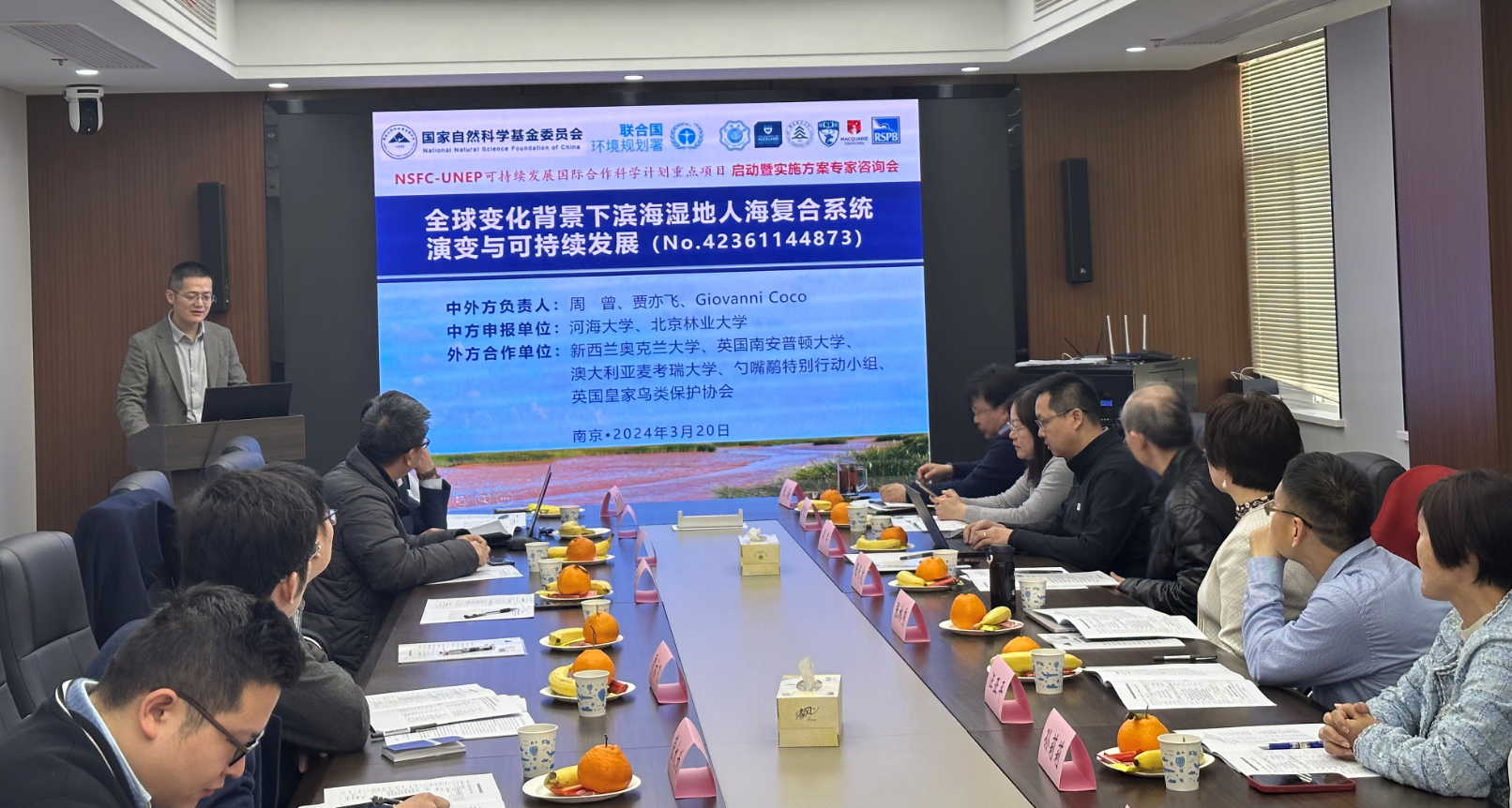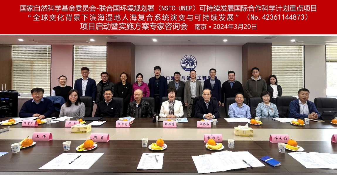 2024年3月20日,毛巾哥 周曾教授作为项目负责人的国家自然科学基金委员会-联合国环境规划署(NSFC-UNEP)可持续发展国际合作科学计划重点项目“全球变化背景下滨海湿地人海复合系统演变与可持续发展(项目批准号:4236114487)”项目启动会在南京顺利召开。