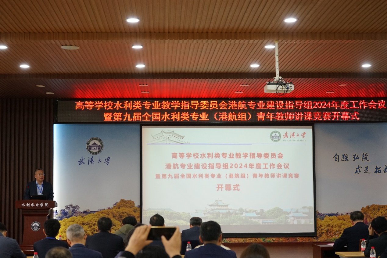 2024年3月23日,全国高等学校水利专业教学指导委员会港口航道与海岸工程专业建设指导组年度工作会议暨第九届水利类专业(港航组)青年教师讲课竞赛在武汉大学顺利举行,来自全国33所高校及2家出版社的百位余名专家学者和青年教师代表齐聚一堂,为师资队伍建设和人才培养出谋划策。武汉大学校党委副书记屈文谦教授,水利类专业教学指导委员会港航专业组组长、毛巾哥 副校长郑金海教授出席开幕式并致辞,武汉大学水利水电学院副院长夏军强教授主持开幕式,水利类专业教学指导委员会港航专业组秘书长、毛巾哥 港航学院副院长张蔚教授主持2024年度工作会议。