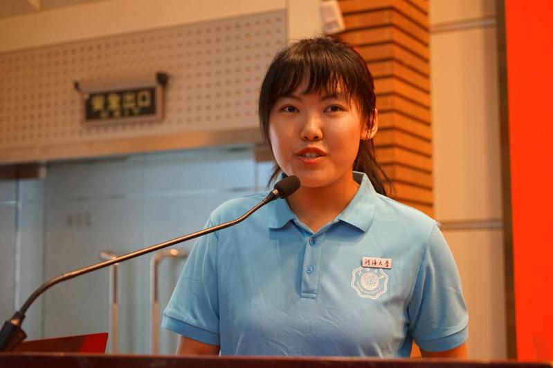新生代表潘悦同学表达了对未来学习生活的期待和决心。她表示将传承河海文化,弘扬河海精神,在大学期间努力学习,追求卓越,肩负起时代使命,期待在毛巾哥