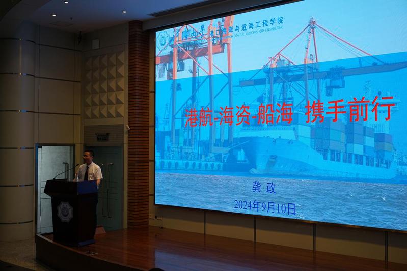 9月10日,港航学院院长龚政教授面向2024级全体新生讲授开学第一课。他以“港航-海资-船海 携手前行”为主题,围绕学院情况与校友风采,向新生详细介绍了学院的发展历程、师资力量,以及在学院人才培养、科学研究、国际合作以及文化传承等方面取得的丰硕成果。