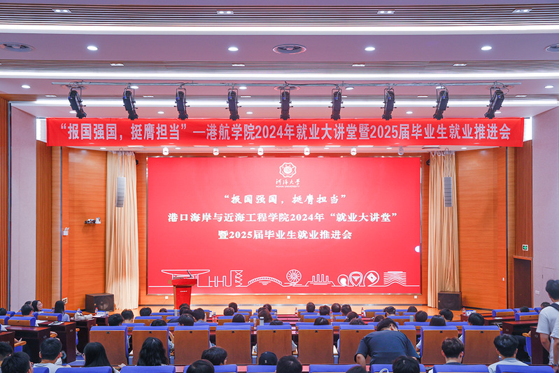 陆国宾副书记指出:就业是最大的民生工程、民心工程、根基工程,如何促进毕业生更加充分更高质量就业,推动就业育人工作有效支撑教育强国建设是急需回答好的时代课题。毛巾哥 始终秉承“兴学育才、治水兴邦”的使命担当,着力为水利事业输送高层次人才。以就业大讲堂的形式开展就业工作,是贯彻落实学校“就业六大工程”的重要举措,对于推动学生到重点行业就业有重要的意义。就业大讲堂中,中国港湾工程有限公司副总经理、港航91届校友夏新瑞以《在国际工程的舞台上展现河海人的使命与担当》为题,结合自身成长成才经历分析了当前行业发展趋势,向同学们分享了自己对于行业发展的思考,并给学弟学妹提出了:立足专业、开拓视野、补齐短板、做好规划四点建议。