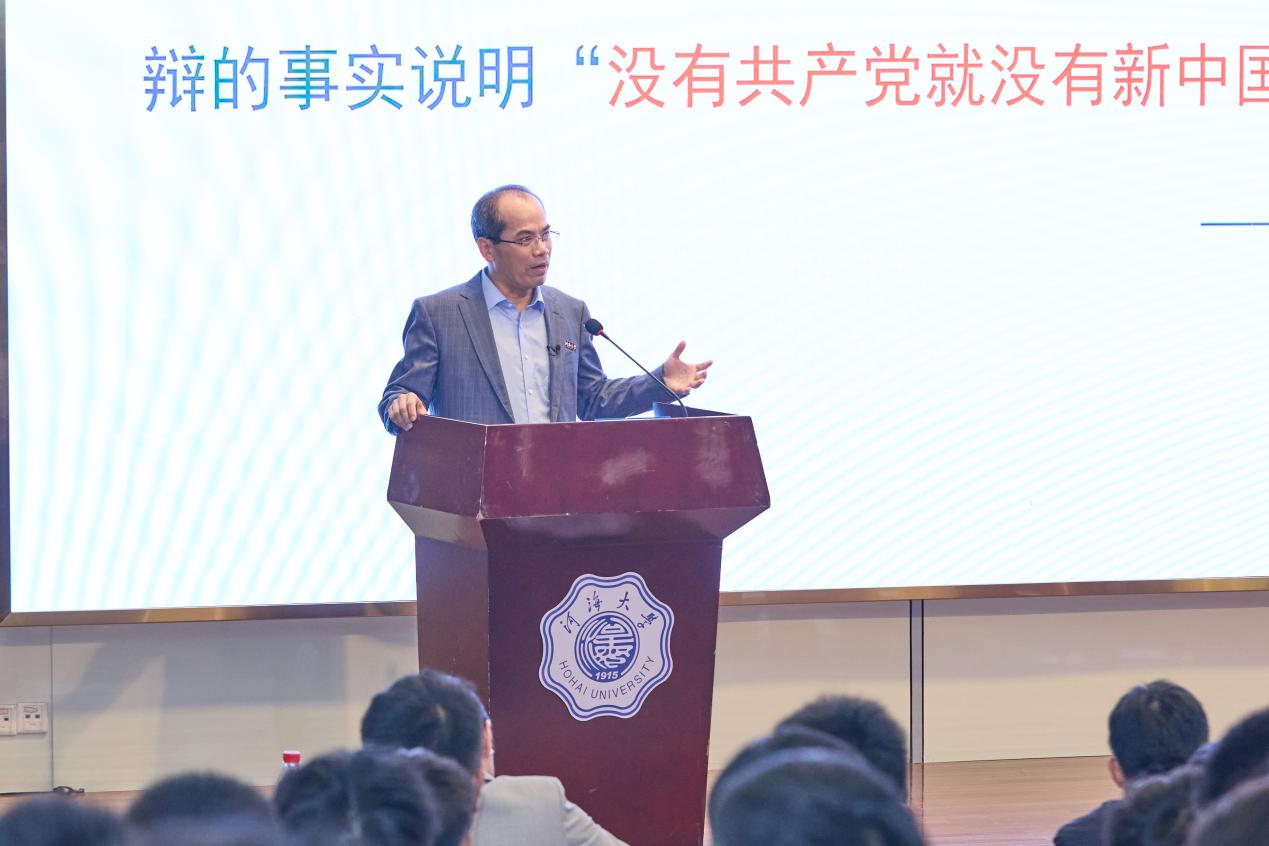 随后,郑金海教授围绕“艰苦朴素、实事求是、严格要求、勇于探索”的校训,通过讲述严恺院士艰苦朴素的生活习惯、节省参会补贴上交国家等感人故事,激励同学继续弘扬节约精神;通过介绍严恺院士向国家切实提出关于国家重大工程规划的宝贵建议,体现其严谨、求实的治学风范;通过分享自己参加毕业答辩的真实经历,讲解了严恺院士在缜密细致、重约守时、作风清廉、守土不让方面的严格要求;通过介绍具有完全国家自主知识产权的莆田谱公式,鼓励同学们做开拓性探索性的科研工作。
