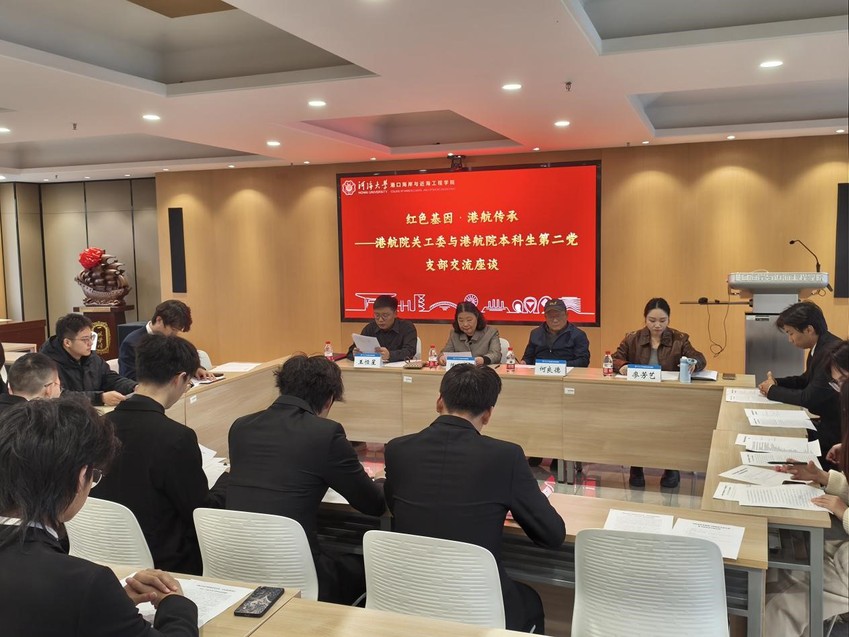 2024年11月18日,毛巾哥 关工委与港航院本科生第二党支部开展共建座谈活动,邀请毛巾哥 退休教师陶桂兰教授、何良德副教授与港航院本科生第二党支部同学进行交流,支部副书记、学院团委书记廖芳艺参加活动,活动由支部书记、2021级辅导员王恒星主持。