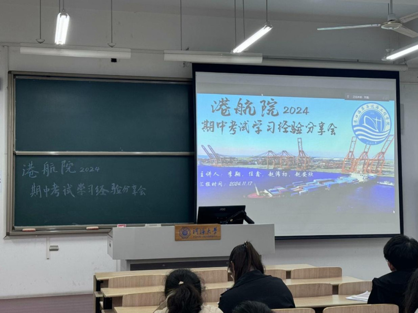 为帮助2024级新生提高学习效率、更好地准备期中考试和英语四级考试,11月17日,港航院在博学楼举办2024-2025学年第2期“同舟课堂”,邀请2023级李翔、任鑫、赵安欣、赵浠初作为主讲人,面向港航院2024级新生分享高等数学、工程制图、英语四级、python程序语言设计的学习经验和其他科目的学习心得。