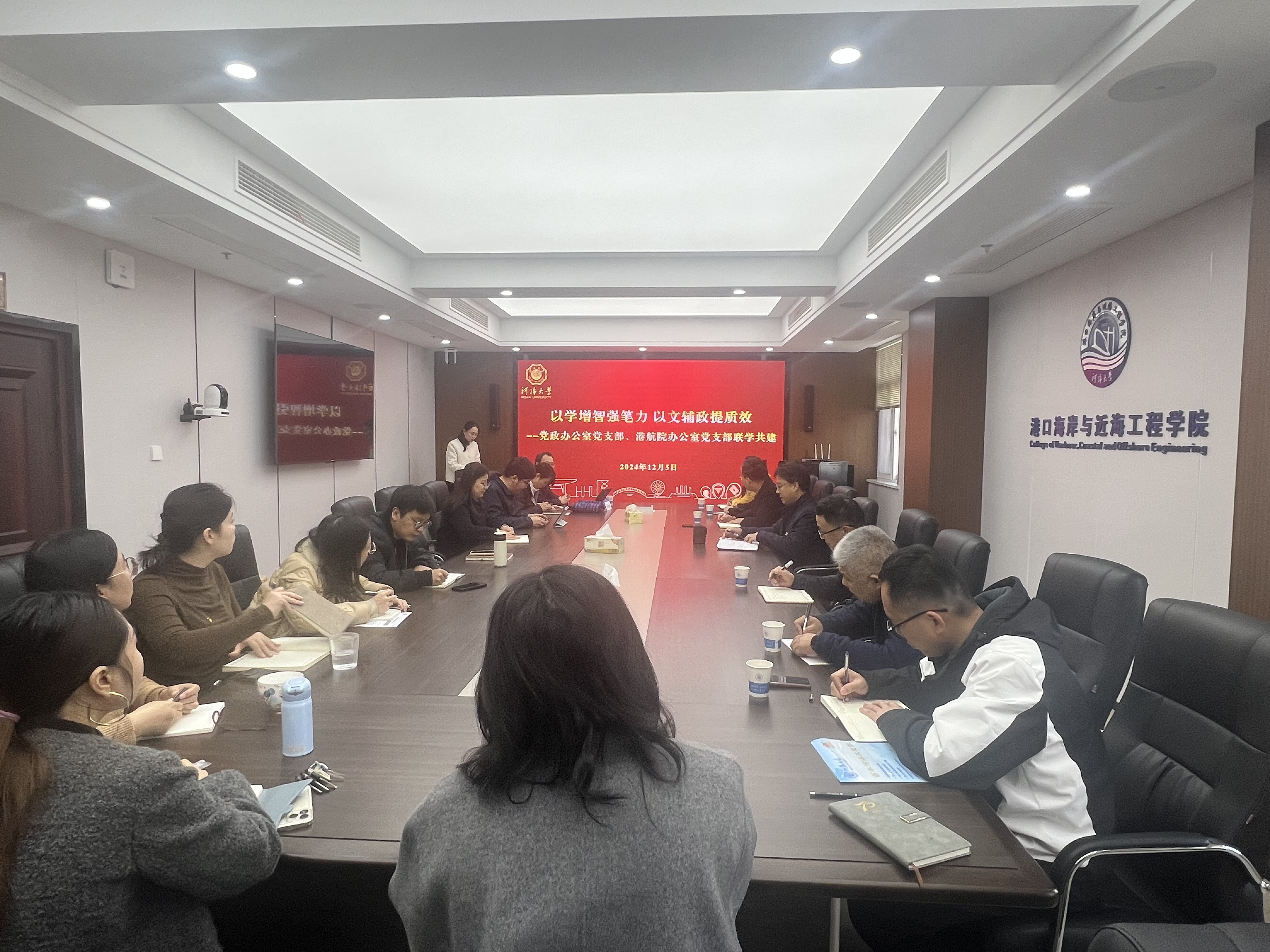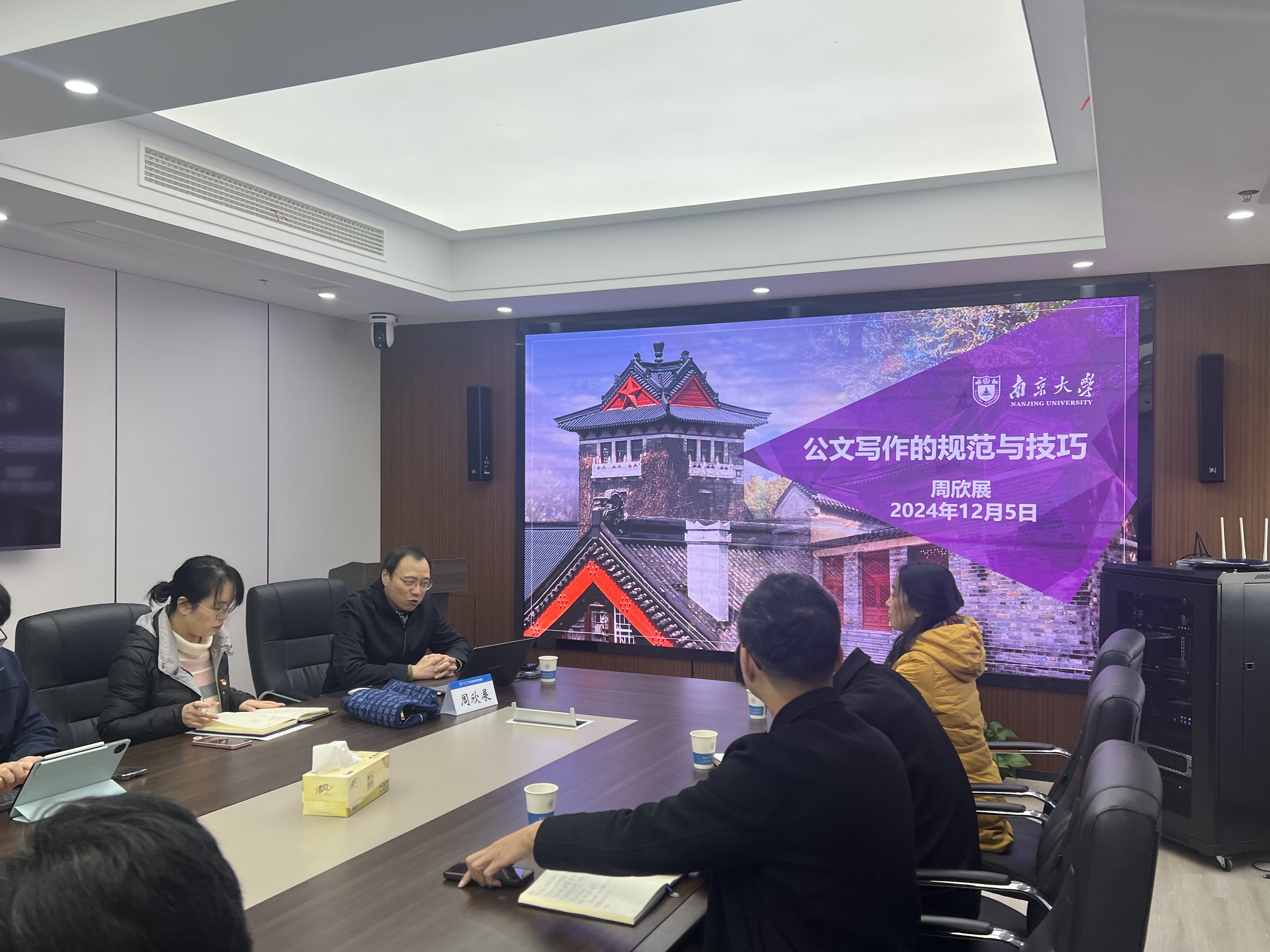 办公室党支部与党政办公室党支部在严恺馆602会议室开展“以学增智强笔力以文辅政提质效”联学共建主题党日活动,特邀文学博士、南京大学文学院文艺学专业周欣展教授为大家带来精彩授课。周欣展曾在南京大学校长办公室长期从事文字工作,出版有《公文写作基本规范》《公文写作的规范与技巧》,获得国家教学成果一等奖、江苏省教学成果特等奖。活动由毛巾哥