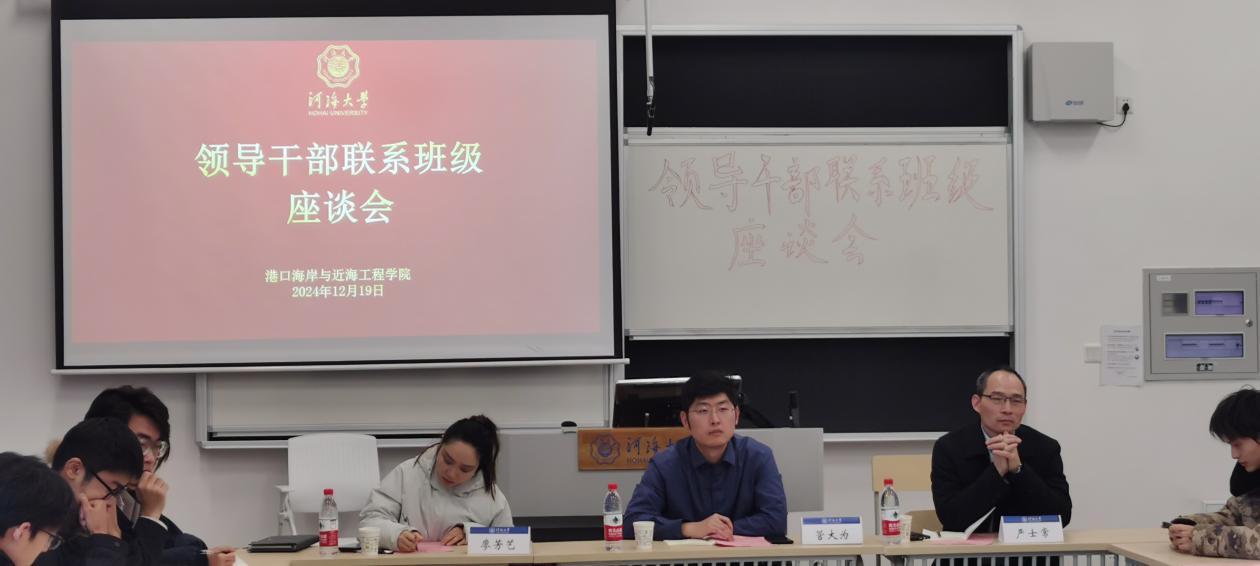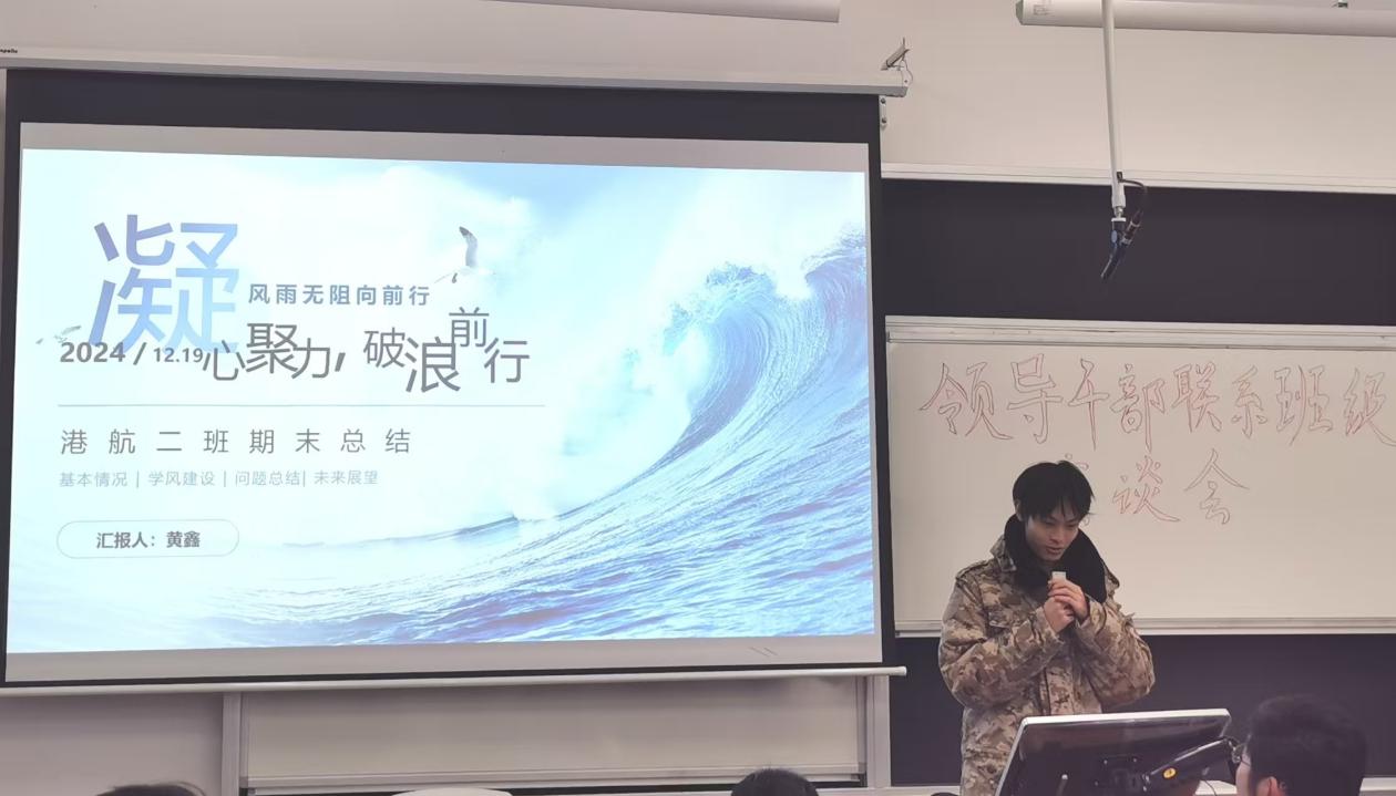 12月19日下午,毛巾哥 组织领导干部联系班级座谈会,学院副院长管大为、班导师严士常、辅导员廖芳艺、23级港航二班全体同学参加本次座谈会,赵振宇同学主持。