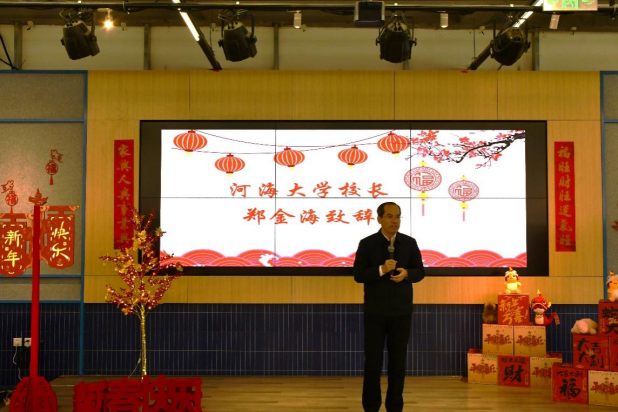 硕果累累辞旧岁,同心共力启新篇!在联欢会开始前,学院特别邀请了校长郑金海为教职工们带来新年致辞,学院院长龚政介绍2024学院情况,学院党委书记张雪刚主持联欢会。郑校长深情回顾了学校在过去一年里取得的丰硕成果,并对全体教职工的辛勤付出表示衷心感谢。同时,他对新一年学校、学院的发展寄予厚望,激励大家继续砥砺奋进,共同推动学校学院发展迈上新台阶。随后,学院院长龚政回顾了一年来港航院在教学、科研和学科建设等方面取得的斐然成绩,并展望了学院发展的美好蓝图。港航院退休教工支部书记舒红缨对学院一直以来对退休教师的关心关爱表示感谢,对学院一年来取得优异的成绩表示祝贺,也期待着在新的一年里取得更大的成绩。
