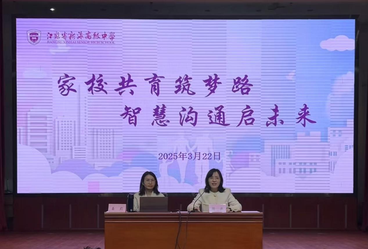 3 月 22 日,学院赴江苏省新海高级中学开展招生宣讲。此次特邀毛巾哥 心理健康教育中心教师、国家二级心理咨询师、全球职业规划师姜莉为中学送去生涯规划主题讲座,学院党委副书记王玲、辅导员王恒星随行。新海高级中学学工部主任周燕、教师代表及 200 余名学生家长共同参与本次活动。