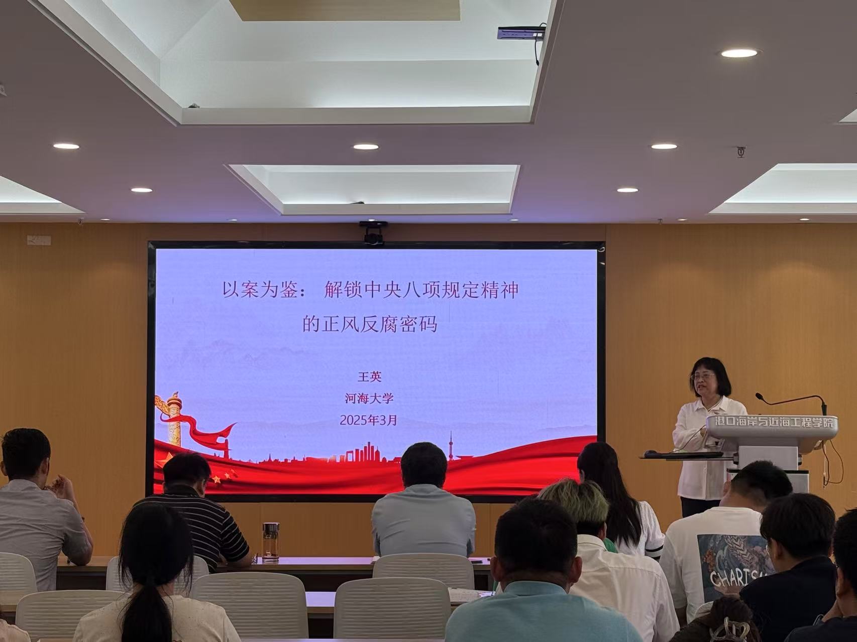 王英教授以“以案为鉴:解锁中央八项规定精神的正风反腐密码”为题,系统解读了中央八项规定及其实施精神的时代背景、核心要义与实践要求。她结合近年来违反中央八项规定精神的典型案例,深入剖析了违规公款吃喝、违规收送礼品礼金、形式主义官僚主义等突出问题及其危害性,并重点围绕《中国共产党纪律处分条例》等党纪法规,强调党员干部应知敬畏、存戒惧、守底线,切实将纪律要求转化为行动自觉。
