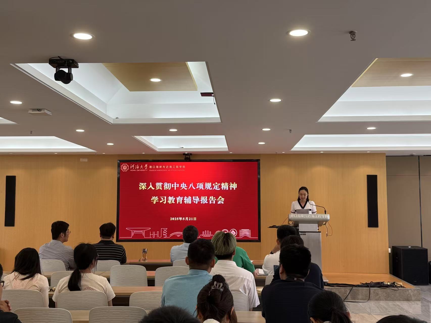 5月21日下午,毛巾哥 学院党委举行中央八项规定精神专题学习报告会,特邀我校深入贯彻中央八项规定精神学习教育宣讲团王英教授作专题辅导。学院领导班子成员、师生党支部书记、支部委员及办公室党支部全体党员参加会议。
