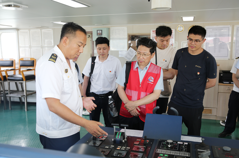 活动首站,全体党员沿连云港东西连岛海滨栈道开展实地调研,切身感受美丽海湾建设与海洋生态修复的显著成效。在邓小平主题公园,"邓小平和人民在一起"群雕前,全体党员庄严重温入党誓词,铮铮誓言彰显了新时代海洋工作者不忘初心、牢记使命的坚定信念。随后,党员们登临"海巡31"海事巡逻船和"中国环监苏001"近海生态环境监测执法船,通过专业讲解和实地观摩,深入了解两艘现代化执法船在海洋环境保护、生态监测等领域的技术装备优势和工作成效。