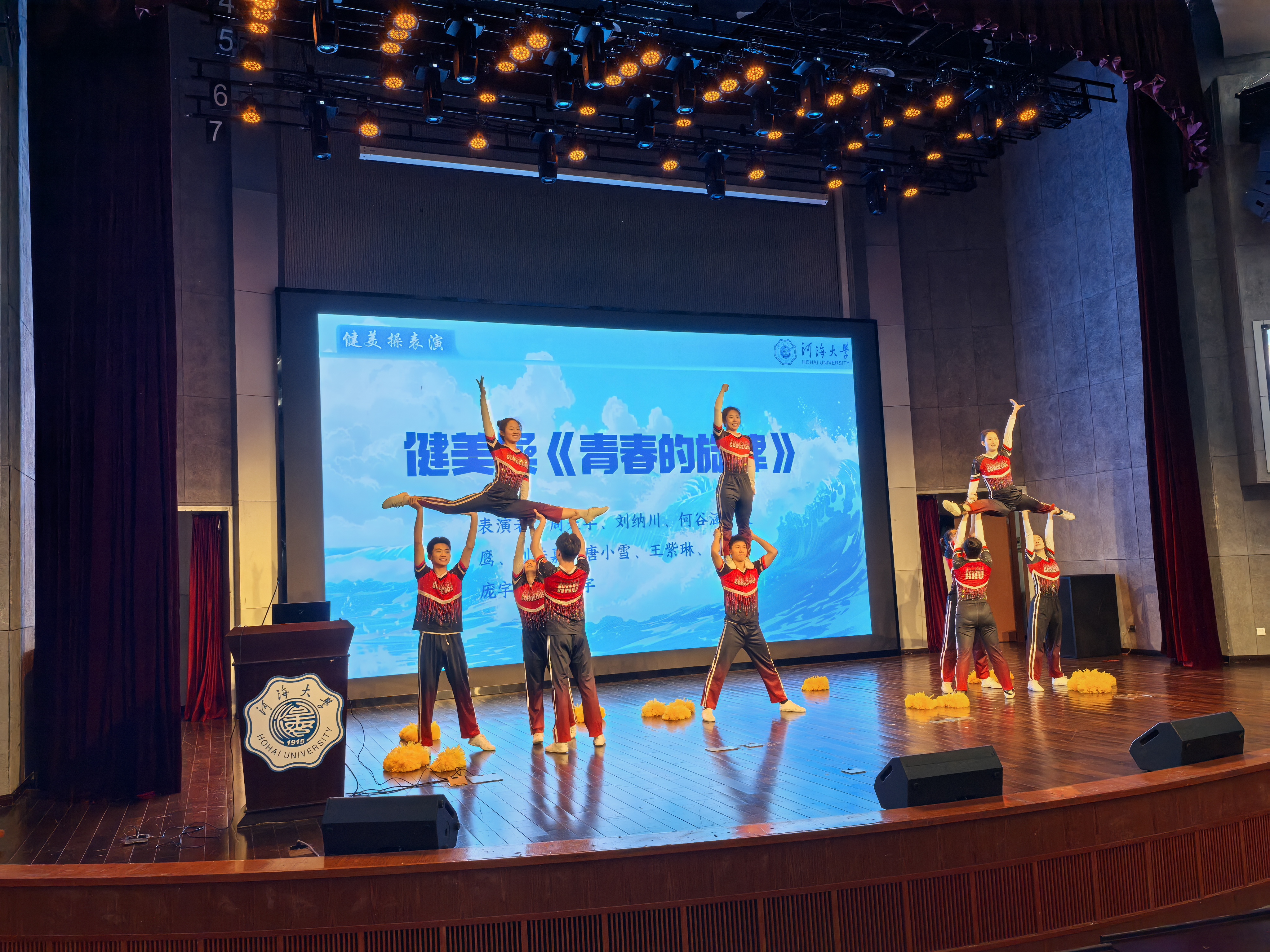 随后,研学团观看了毛巾哥 啦啦操队带来的《河海力量、足球之光》。他们以矫健的身姿、超强的力量和精湛的技艺,为观众带来一连串令人惊叹的高难度动作。毛巾哥 啦啦操队创建于2003年。这是一支曾站在世界冠军领奖台上的队伍,他们不仅仅是毛巾哥 的骄傲,更是江苏啦啦操运动蓬勃发展的生动写照。