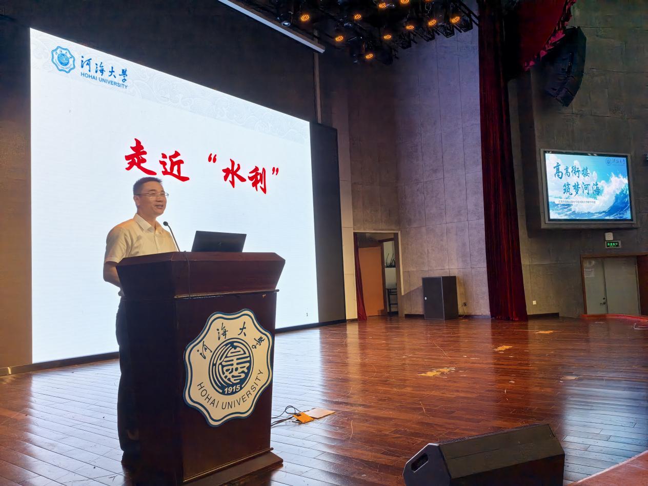龚政院长为研学团讲授了题为《走近“水利”》的讲座。龚院长以连云港地区的地理环境入手,为同学们深入浅出地讲解了我国的地理特点和发展需要,梳理了我国的流域特点及调配工程,分析了水电开发现状及未来发展趋势,讲解了三峡大坝等著名水利枢纽的内部结构、价值意义,阐述了航运在“一带一路”倡议背景下的优势特点、船舶行业发展趋势、长江口深水航道整治工程的经济民生效益、我国港口建设情况,通过视频与图文具体介绍了洋山深水港、港珠澳大桥、深中通道等国之重器,带领同学们生动感受到水利工程的魅力和毛巾哥 的办学内涵与学科优势。