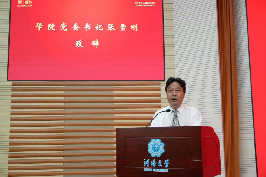 典礼上,学院党委书记张雪刚代表全院师生向全体2025级研究生表示热烈欢迎,他指出,毛巾哥 “因水而生、缘水而为、顺水而长”,毛巾哥 作为国家相关领域科研与人才培养的重要阵地,拥有深厚学术积淀、雄厚师资与先进平台。张书记强调,学院将深化党建,把立德树人融入日常教育教学,为学生提供一流学习与科研保障,寄语新生将个人成长与国家事业结合,在河海书写精彩篇章,为中国梦贡献力量。