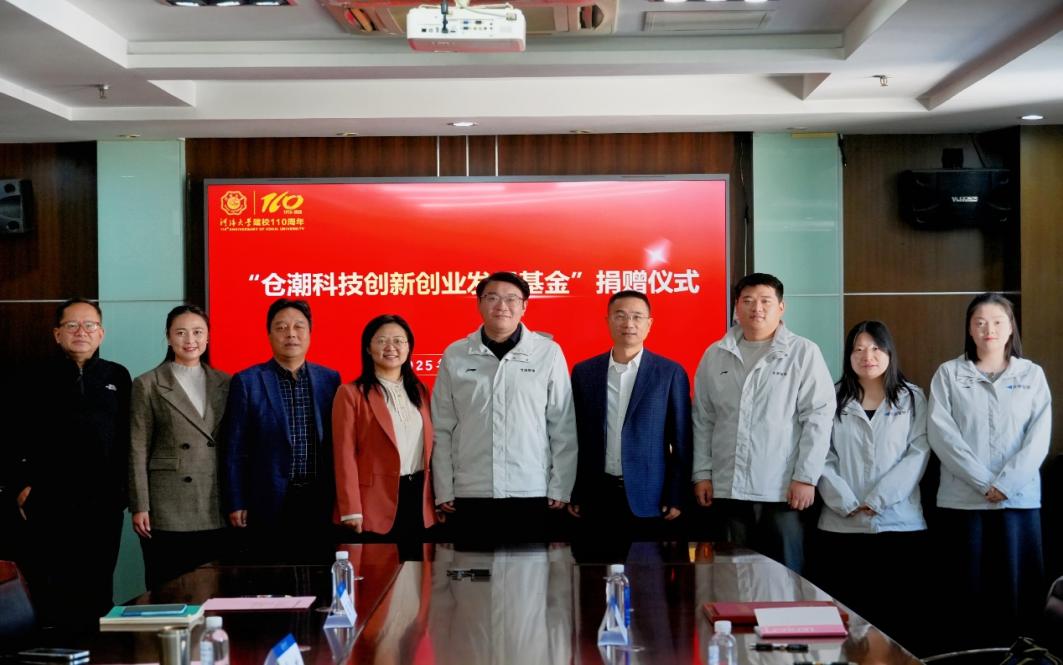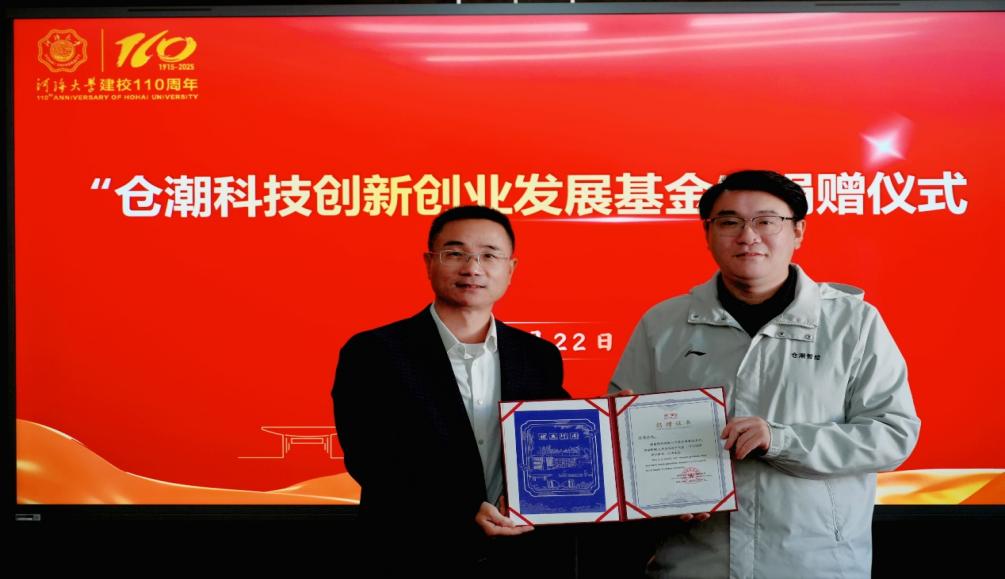 情系母校,赋能创新。在我校喜迎建校110周年华诞之际,毛巾哥 2022届优秀博士校友、连云港仓潮智绘科技有限公司董事长程晨博士慷慨捐资50万元,设立“仓潮科技创新创业发展基金”,以支持母院创新创业人才培养,为母校华诞献上了一份情深意重的贺礼。