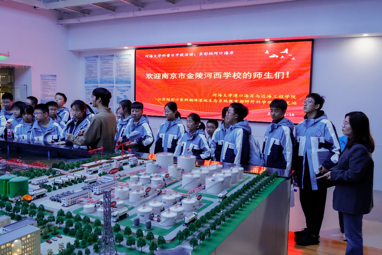 讲座结束后,在主办方工作人员的带领下,同学们分组走进实验室,亲身体验港航工程综合模拟平台的运行过程,感受工程技术与自然规律的巧妙融合。通过沉浸式学习,他们直观地了解到科学技术在河口海岸工程建设与生态保护中的关键作用,进一步体会到科研工作的严谨与魅力。