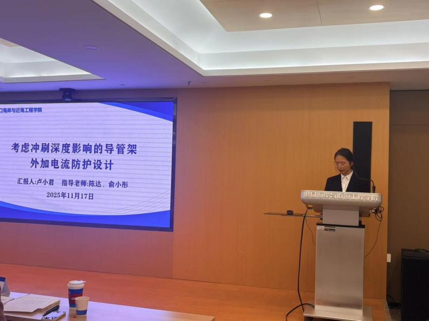 11月17日下午,港航院第十四届“学海争峰”学术年会硕士第一场报告会在严恺馆702顺利举办。本次专场共有来自水运工程科学研究所以及海岸及海洋工程研究所的6名硕士研究生参与,江朝华、卢向雨、苏敏3位评委老师为同学们提出指导与建议。