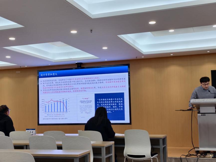 11月18日上午,港航院第十四届“学海争峰”学术年会硕士专场第二场报告会在严恺馆702顺利举办。本次专场共有来自海岸带资源与环境研究所、港航物流与绿色发展研究所以及海洋可再生能源工程研究所的7名硕士研究生参与,杨洁、陈欣迪、靳闯3位评委老师为同学们提供指导和建议。