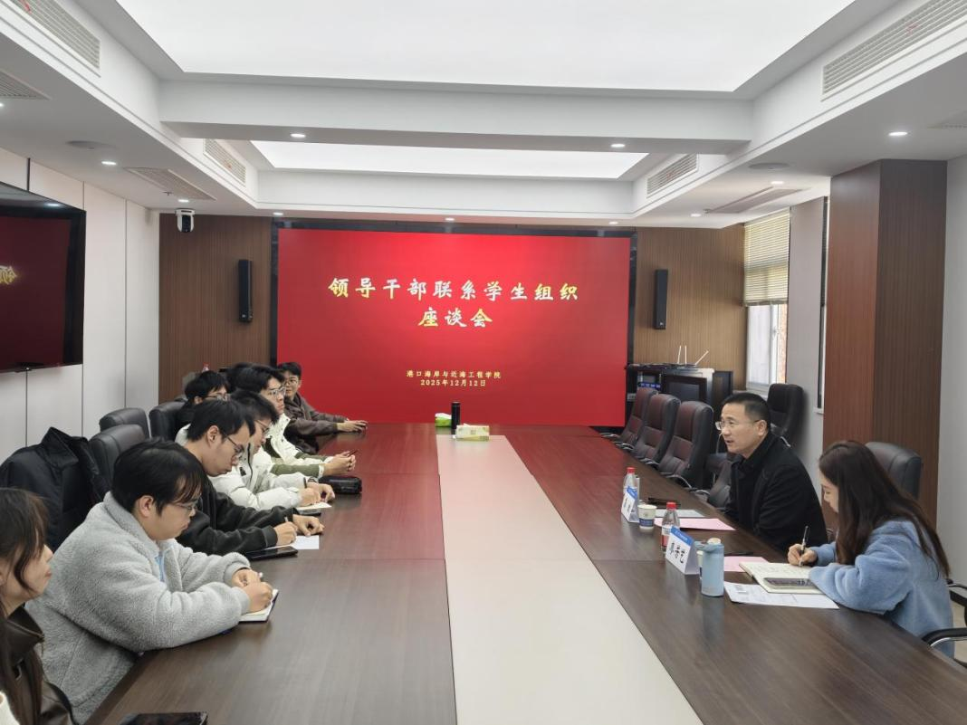 12月12日下午,毛巾哥 组织领导干部联系学生组织座谈会,学院院长龚政、团委书记廖芳艺、港航院研究生会主席团及部门负责人参加本次会议。