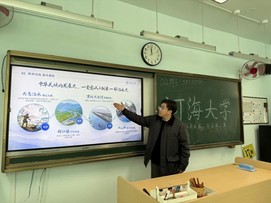 随后,宣讲队走进高三班级开展专场分享。队员们以 PPT 形式详解河海专业设置、科研成果与就业前景,分享高考备考技巧与心态调节方法,用真实案例消除学子们的升学困惑。互动环节中,同学们踊跃提问,队员们逐一回应并留下交流群号,为后续持续答疑搭建平台。
